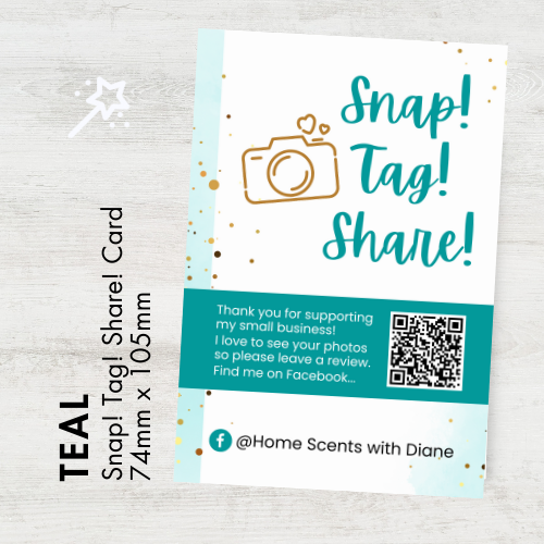 Snap! Tag! Share! Cards are a great way to encourage your customers to share their purchases and generate social media sales.